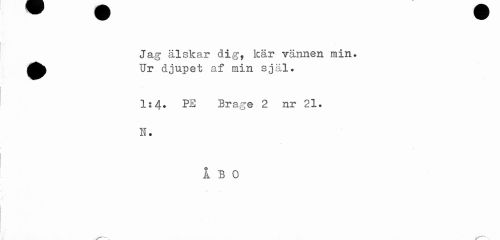 //// Jag älskar dig, kär vännen min. ^^ Ur djupet af min själ. //// 1:4. PE Brage 2 nr 21. //// H. //// I B O ////