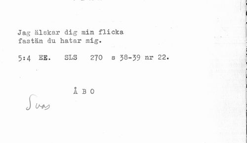 //// [ //// Jag älskar dig min flicka fastän du hatar mig. //// 5:4 EE. SLS 270 s 38-39 nr 22. //// i //// ÅBO //// j //// i ////