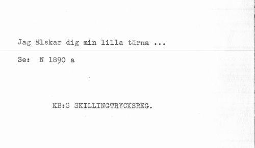 //// Jag älskar dig min lilla tärna ... Se: N 1890 a //// * //// KB:S SKILLINGTETCKSREG. ////