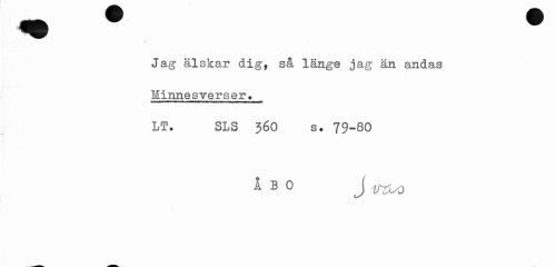 //// » //// Jag älskar dig, så länge jag än andas Minnesverser» //// LT. SLS 36O s. 79-80 //// 1 B 0 J 1KL4 ////