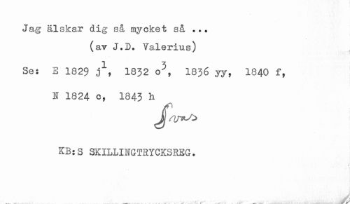 //// Ja g älskar dig så mycket så • ? • //// (av J.D. Yalerius) 1 3 //// Se; E 1829 3 > 18J2 o , 18J6 yy, 1840 f, I 1824 c, 1843 h //// /l 4 //// _ 1 . 5 sv ////