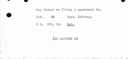 //// j //// Jag älskat en flicka i ungdomens år, ^^ 1:8. RE Uppt. Sjöberg. //// R 6, 202, 24. Mel. //// ÅBO HAHCKSHT MS //// o , ////