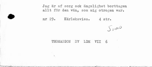 //// Jag är af sorg ock ängslighet borttagen allt för den vän, som mig otrogen var» //// ^^ nr 29* Kärleksvisa. 4 str. //// 5>® //// THOMAS SOH SY LDM 711 6 //// 't ////