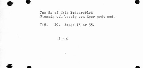 //// w w w //// Jag är af äkta kvasareblod //// Sturisig och bussig och äger godt mod. //// 7:8. SO. Brage 1J nr 35. //// A B 0 //// » ////