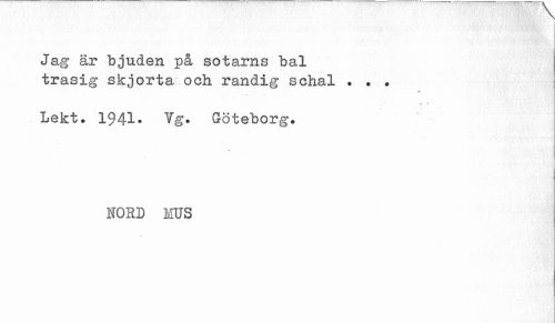 //// i //// Jag är "bjuden på sotarns bal trasig skjorta och randig schal . . . //// •i //// v - //// Lekt. 1941* Vg. Göteborg. //// ¦ //// NORD MUS ////