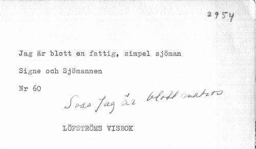 //// Jag är blott en fattig, simpel sjöman Signe och Sjömannen //// Nr 60 , _ //// J U'L //// LÖFSTRÖMS VISBOK //// ¦ ////