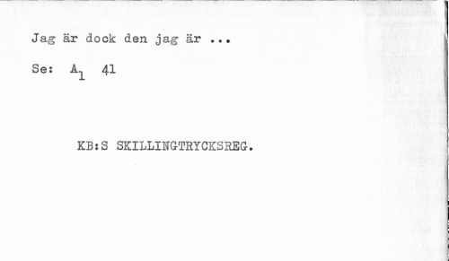 //// Jag är dock den jag är •. • \ //// Se: Å1 41 //// KB;S SKILLINGTRYCKSREG. ////