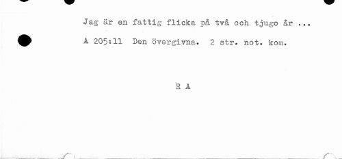 //// / //// Jag är en fattig flicka på två och tjugo år .. . ^^ k 205*11 Den övergivna. 2 str. not. kom. //// H A ////