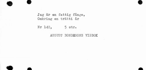 //// Jag är en fattig fånge, Omkring en trätti år //// Ur 142, 5 str. //// AUGUST BONDESONS VISBOK ////