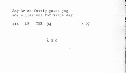 //// ¦ //// Jag ar en fattig gosse jag som sliter ont för varje dag //// i //// 4:4 LP INE 94 s 27 / //// ; //// ¦ //// ÅBO //// ¦ //// » - //// i I ¦ ////
