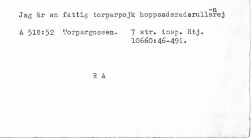 //// yi i //// Jag är en fattig torparpojk hoppsaderaderullarej A 518:52 Torpargossen. 7 str» insp. Rtj. //// 10660:46-491* //// i ¦ //// S A //// I ////