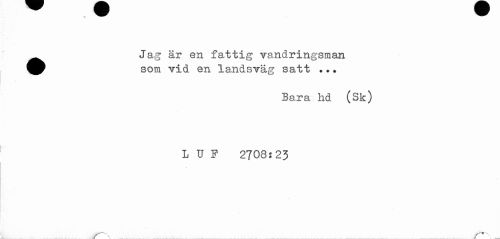 //// Jag är en fattig vandringsman som vid en landsväg satt ... //// Bara hd (Sk) //// L U F 2708i 23 //// f \ __... ... _ ////