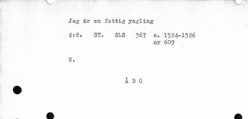 //// Jag är en fattig yngling //// 4:8. Sf. SLS 367 s. 1524-1526 //// nr 609 //// » //// I. //// ÅBO ////