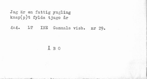 //// Jag är en fattig yngling knap(p)t fylda tjugo år //// 4:4. Lf IHE Gammals visb. nr 29. //// i //// i B 0 //// \ j. ^ > v ; >j ; , fl ___.. - - ___ .. ___ __U«ÄAuli ___ -- - ...iämäj - «*m<M - - - ' ////