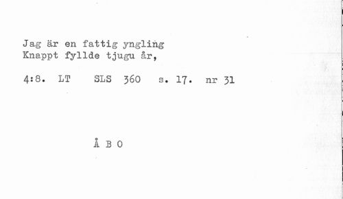 //// m //// Jag är en fattig yngling Knappt fyllde tjugu år, //// 4:8. LT SLS 36O s. 17. nr 31 //// = //// % //// ÅBO ////