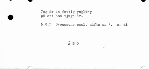 //// Jag är en fattig yngling ^^ på ett och tjugo år. //// 6:8.? Svenssons saral. häfte nr 3* s. 41 //// ÅBO //// ___r u:___rv ////