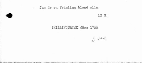 //// Jag är en främling bland alla //// SKILLINGTHYCK före 1700 //// J ////