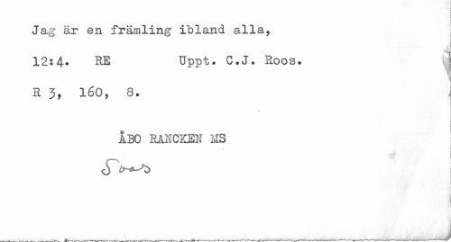 //// t j //// I //// I //// Jag är en främling ibland alla, //// 12:4. RE Uppt. C.J. Roos. C //// E 3, 160, 8. i //// t //// * //// ÅBO RAICEEK MS //// ~ ^ I //// ' , t;; ij| //// y /»BOT' \ ij //// * * //// ^ ^ __ f|... ^... j;,.f|,|... ////