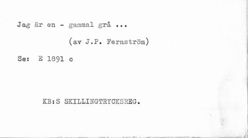 //// Jag är en - gammal grå ••» //// (av J.P# Fernström) Se: E 1891 c //// KB:S SKILLINGTHYGKSREG. ////