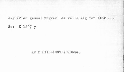//// I //// Jag är en gammal ungkarl de kalla mig för stör ... //// Se: E 1897 y //// KB: S SKILLINGTRYCKSREG. //// I ////