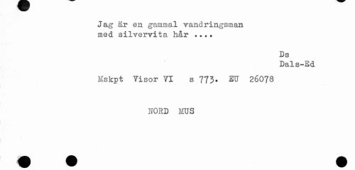 //// Jag är en gammal vandringsman med silvervita hår ___ //// Ds //// Dals-Ed //// Mskpt Yisor Yl s 773. EU 26078 //// NORD MUS ////