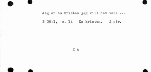 //// Jag är en kristen jag vill det vara ... //// B 28:1, s. 14 En kristen. 4 str. //// R A //// \ ////