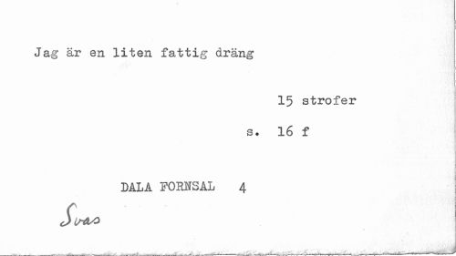 //// Jag är en liten fattig dräng //// i //// 15 strofer //// s. 16 f //// I //// I t //// DALA FOEESAL 4 //// r ¦ ! //// / //// ___-___.,___--.-___-*---___~___*Bé•--___---^ ////