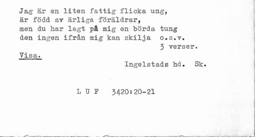 //// Jag är en liten fattig flicka ung, är född av ärliga föräldrar, men du har lagt på mig en börda tung den ingen ifrån mig kan skilja o#s*v* //// 3 verser. //// Yisa. //// Ingelstads hd# Sk» lO 3420:20-21 //// -___. .. -II --¦-.---v iKwV ,V. -?'»¦T»».».-. _. . ..___ _ - . - .r.. „ -, _ .___,- r ' - ' . j ...___---T ---"1-1-*--- ////