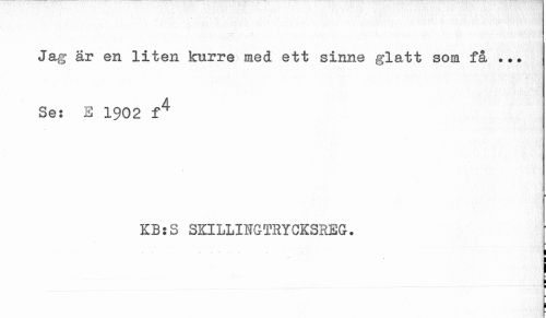 //// Jag är en liten kurre med ett sinne glatt som få ... Se: E 1902 f4 //// ¦ //// KB:S SKILLINGTRYCKSREG. //// ¦ //// I I //// i ////