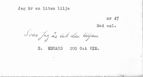 //// Jag är en liten lilja //// nr 47 Med mel. //// J&tu Usé écytc^ //// S. EDTJARD 200 G:A TIS. //// « //// ^ ^ M- _T- Jv- ¦¦ <\\ 1 <Tifn:ii"._n.un*i» ..I JttMi -j_»j-i.- Hi ////