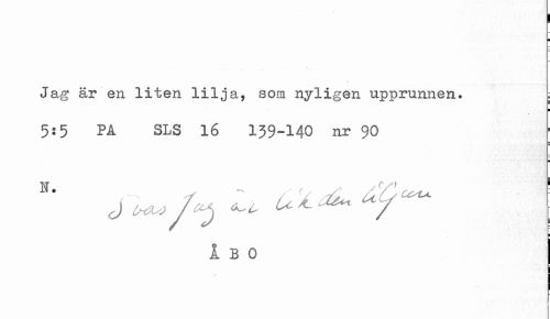 //// I //// i //// Jag är en liten lilja, som nyligen upprunnen. //// ¦ //// 5 s 5 PÅ SLS 16 139-140 nr 90 //// i //// JU*/-) Zi. ; I //// I //// 1 B 0 ////
