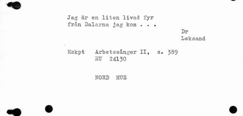 //// Jag är en liten livad fyr från Dalarna jag kom . . ? //// Dr //// Leksand //// » //// Hskpt Arbetssånger II, s. 389 //// au 24130 //// HORD MUS //// ^W' ^^^ ////
