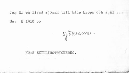 //// Jag är en livad sjöman till både kropp och själ Se: S 1910 00 //// 'cJVucrmo - //// t //// KB:8 SXILLIHGTHYCKSREG. ////