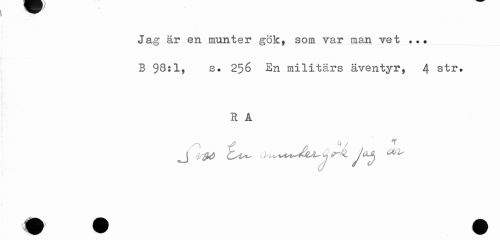 //// Jag är en munter gök, som var man vet ... B 98*1» s. 256 En militärs äventyr, 4 str. //// K Å //// ^J y fÅ. JOJ^ Ml- ////