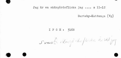 //// Jag är en skärgårdsflicka jag ... s 11-12 //// Surt eby-Kat tunga (Vg) //// I F G H : 3168 //// il //// \Mt: m m k A fe //// V B V m m W ////
