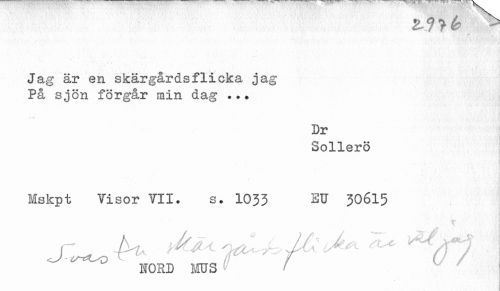 //// Jag är en skärgårdsflicka jag På sjön förgår min dag . .? //// Dr //// Sollerö //// Mskpt Visor VII. s. 1033 EU 30615 //// p - t>i, 'ÅJ^l si/zL^ 26c (A*- ^ A \ //// /f / C / //// HORD MUS ////