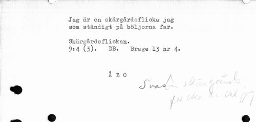 //// Jag är en skärgårdsflicka jag som ständigt på böljorna far. //// Skärgård s fli ekan. //// 9:4 (3). DB. Brage 13 nr 4. //// ÅBO //// C < i/ 7, . //// ' u //// ^^ . . v i </aj ¦ //// £U i/ / ////