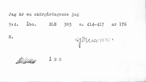 //// i //// Jag är en skärgardsgosse jag //// 9:4. Åbo. SLS 383 s. 414-417 nr 176 //// Amp Å B 0 ////