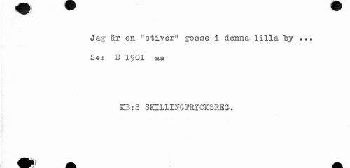 //// m ¦ //// Jag är en Mstivern gosse i denna lilla by ... Se: E 1901 aa //// KB:S SKILLINGTRYCKSREG. ////