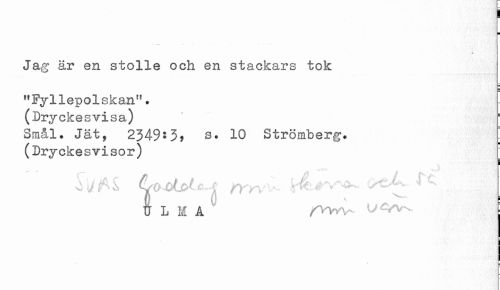 //// Jag är en stolle och en stackars tok //// "Fyllepolskan". (Dryckesvisa) //// Smål. Jät, 23490» 3* 10 Strömberg. ! //// (Dryckesvisor) //// ~ " f\ / i tH i //// £ H /vn'"^ ^ti"'" //// tr L M A | ////