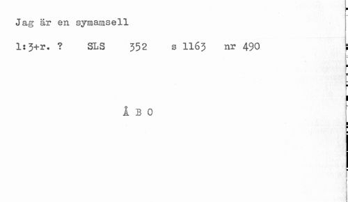 //// Jag är en symamsell //// l:3+r. ? SLS 352 s II63 nr 490 t //// i ¦ //// T //// 1 //// ÅBO //// I //// I I ////