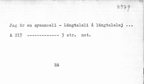 //// 2.n? //// Jag är en symamsell - Längtalali å langtalalej . //// ¦ - - - , . //// A 217 ---3 str. not. //// HA //// I //// i ////