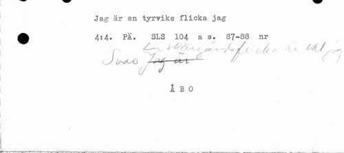 //// Jag är en tyrviks flicka jag £ 4:4. Fi. SLS 104 a s. 87-83 nr //// i - ^r^ (j^^A/i *x o-å 4 ^^, //// cJ Im^O r»^ $ //// / //// i BO //// / ////
