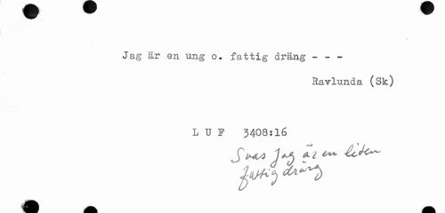 //// Jag är en ung o. fattig dräng - - - //// Havlunda (Sk) //// LO 3408:16 //// cU^ ////