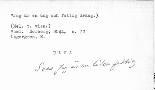 //// "Jag är en ung och fattig dräng.) //// (Mel. t. visa.) //// Ysml. Horberg, 8044* s. 72 //// Lagergren, e. //// dlia //// i ¦ //// ¦ //// i ////