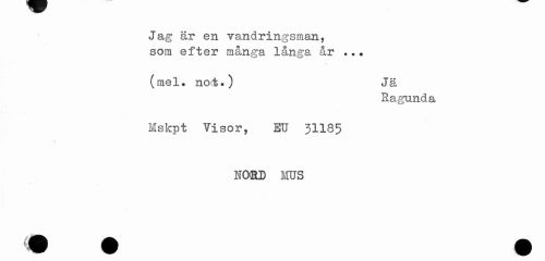 //// Jag är en vandringsman, //// som efter många långa år . .? //// \ //// (mel» not.) Jä //// Kagunda //// Msfcpt Visor, EU 31185 //// NORD MUS ////