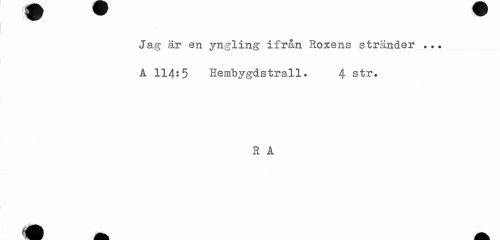 //// w w w //// Jag är en yngling ifrån Roxens stränder ... A 1145 5 Hembygdstrall» 4 str. //// R A //// # ////