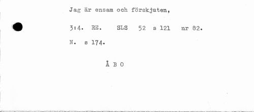 //// Jag är ensam och förskjuten, //// W 3:4. SS. SLS 52 s 121 nr 82. //// N. s 174. //// ÅBO //// » //// ---„---___„___ ___ _ ^___ ////