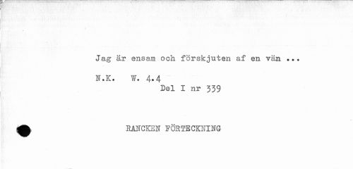 //// rf //// Jag är ensam och förskjuten af en vän ... //// U.K. ¥. 4.4 //// Del I nr 339 //// A RÅNCKEN FÖRTECKNING ////