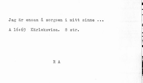 //// ¦ //// ¦ //// Jag är ensam, å sorgsen i mitt sinne • .. A 16:69 Kärleksvisa. 8 str. //// ¦ //// \ //// = ¦ //// i //// a a j //// % ////